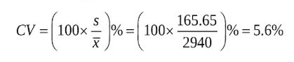 -장인들의 연봉에 조사 결과 표본평균은 2,940만원, 표본 표준편차는 165만 6천5백원이엇다, CV는?